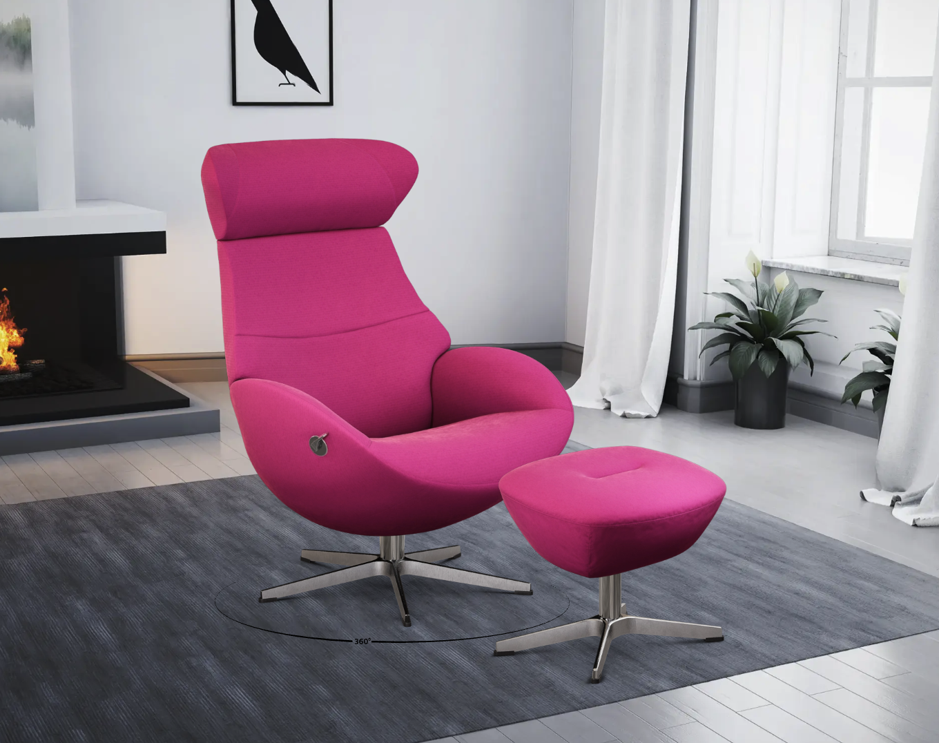 One only covered in soft Evita Pink, with 5 star aluminium base and with footstool.