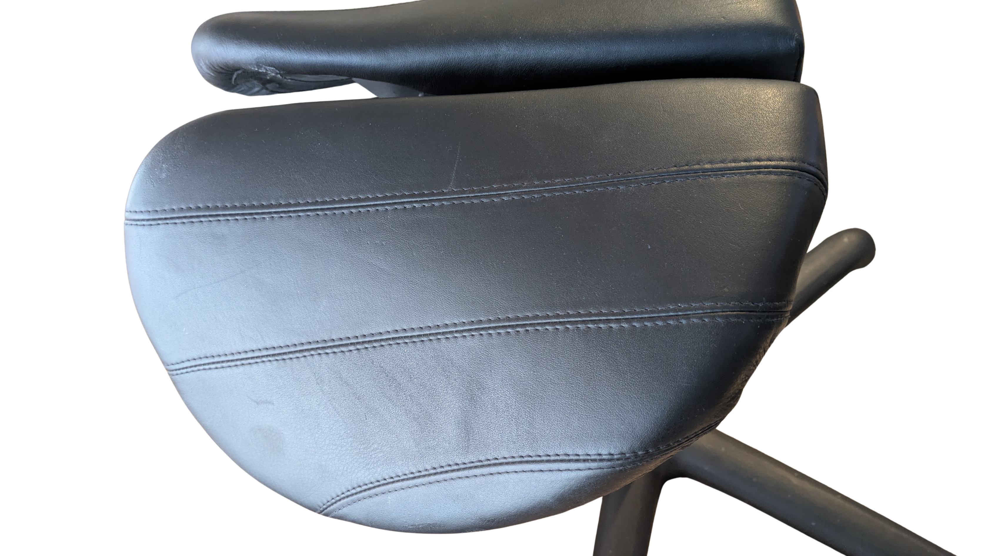 600mm black base with long or medium lift and black leather, featuring 4 separate leather pieces stitched together.